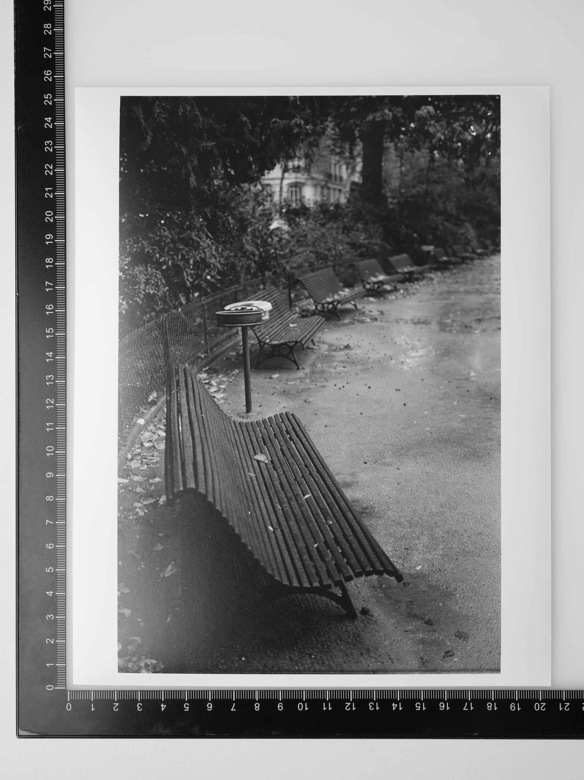 8x10 Silver Gelatin print of BENCH IN SQUARE DU TEMPLE ELIE WIESEL in Paris France